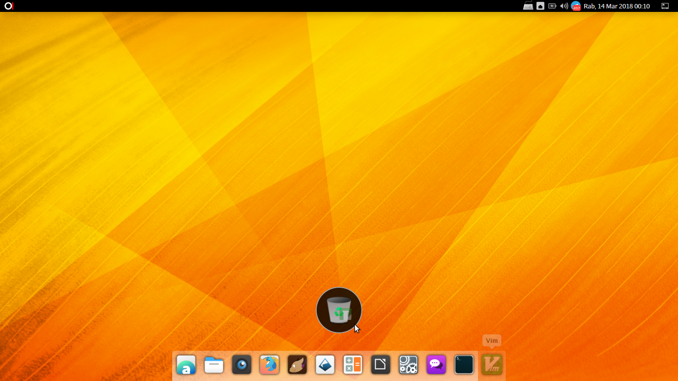 Untuk menghapus aplikasi dari Menu Favorit lakukan langkah berikut; klik tombol kiri tetikus, tahan aplikasi tersebut, kemudian seret ke tempat sampah yang secara otomatis muncul di atas panel tersebut.